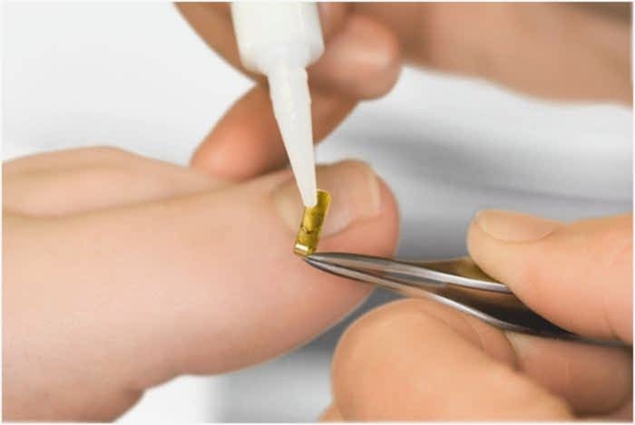 Искусственная ногтевая пластина, скоба или полускоба устанавливается на поврежденный ноготь. Процедура абсолютно безболезненна. Pin Up того, позолоченный искусственный ноготь выглядит как оригинальное украшение. А клиенты, желающие скрыть от окружающих свое лечение, отдают предпочтение прозрачным пластинам.